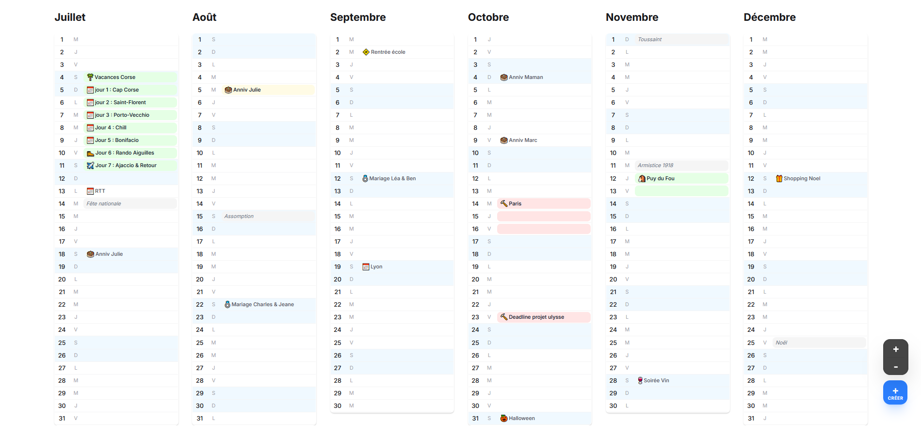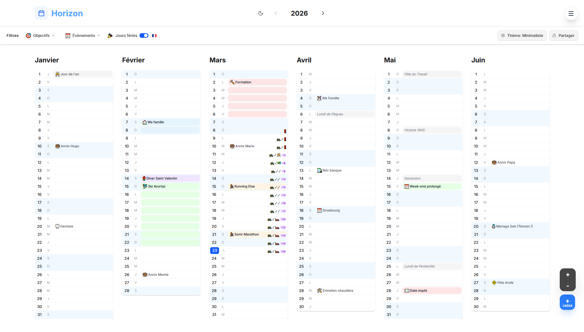 Horizon est un calendrier annuel qui vous permet de voir vos dates clés et suivre vos objectifs.